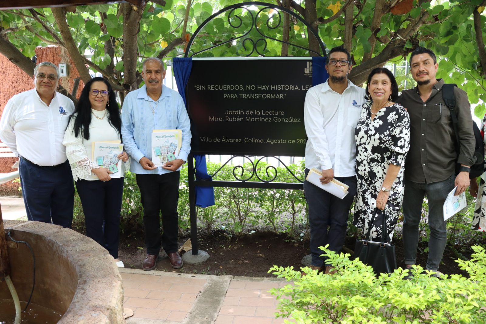 Posteriormente, acompañados de las y los estudiantes, develaron una placa en honor al Maestro Emérito Rubén Martínez González, en el Jardín de la Lectura de esta Unidad, donde se dieron cita, familiares y amigos, para escuchar la lectura de semblanza a cargo del Maestro Carlos César Maldonado, en ceremonia realizada bajo la conducción de la Maestra Alma Elena Macías Santoyo.