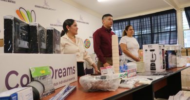 Gobernadora Indira Vizcaíno, ofrece conferencia para dar avance de la reconstrucción de Colima. La acompañan parte de su gabinete.