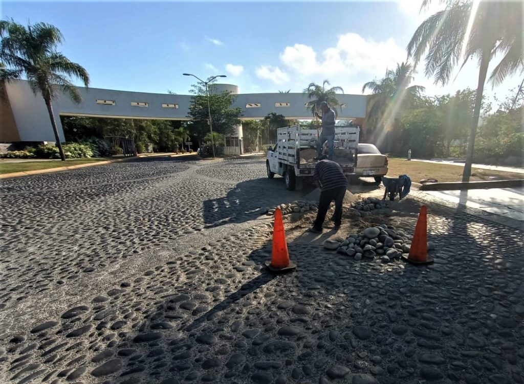 Estos trabajos se hacen con las brigadas de la dirección de Conservación y Mantenimiento, y ya han hecho intervenciones en las calles; Limón y Manglares del Barrio 3 del Valle de las Garzas y además en el empedrado de la entrada de la colonia Villas del Mar.