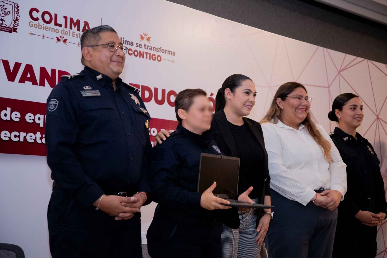 El Gobierno del Estado de Colima entregó este miércoles equipos de cómputo a 65 integrantes del personal operativo y administrativo de la Secretaría de Seguridad Pública (SSP), quienes actualmente están estudiando y siguen preparándose profesionalmente, en evento realizado en el Centro de Convenciones del Complejo Administrativo.