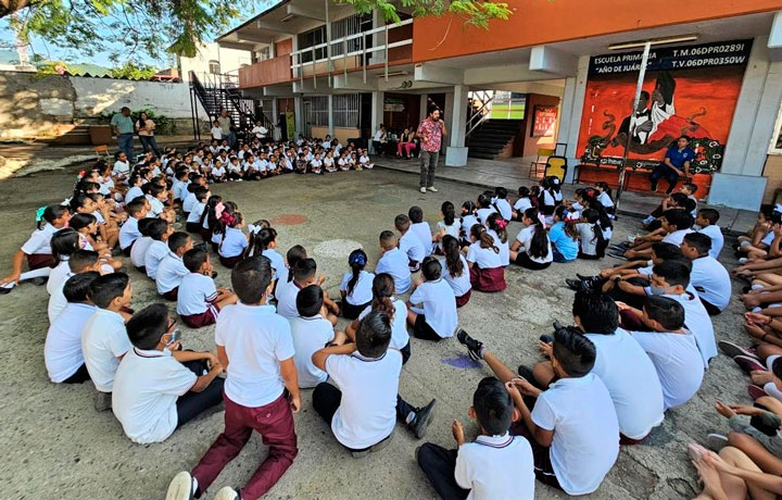 En esta ocasión, se visitó la primaria de Santiago, donde se llevó un cuentacuentos quien interactuó con alrededor de 300 estudiantes y en la Telesecundaria de Vista del Mar, donde se inició un proceso de sensibilización con las y los alumnos de nuevo ingreso, con quienes se realizaron varias dinámicas de juego y habilidad mental con el objetivo de realizar un diagnóstico de sus habilidades lingüísticas.