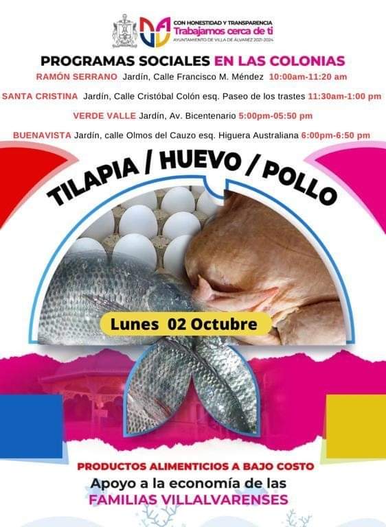 En apoyo de la economía de las familias, hoy lunes se ofrecerá productos de la canasta básica a bajo costo. Encuéntranos en la siguiente colonia.