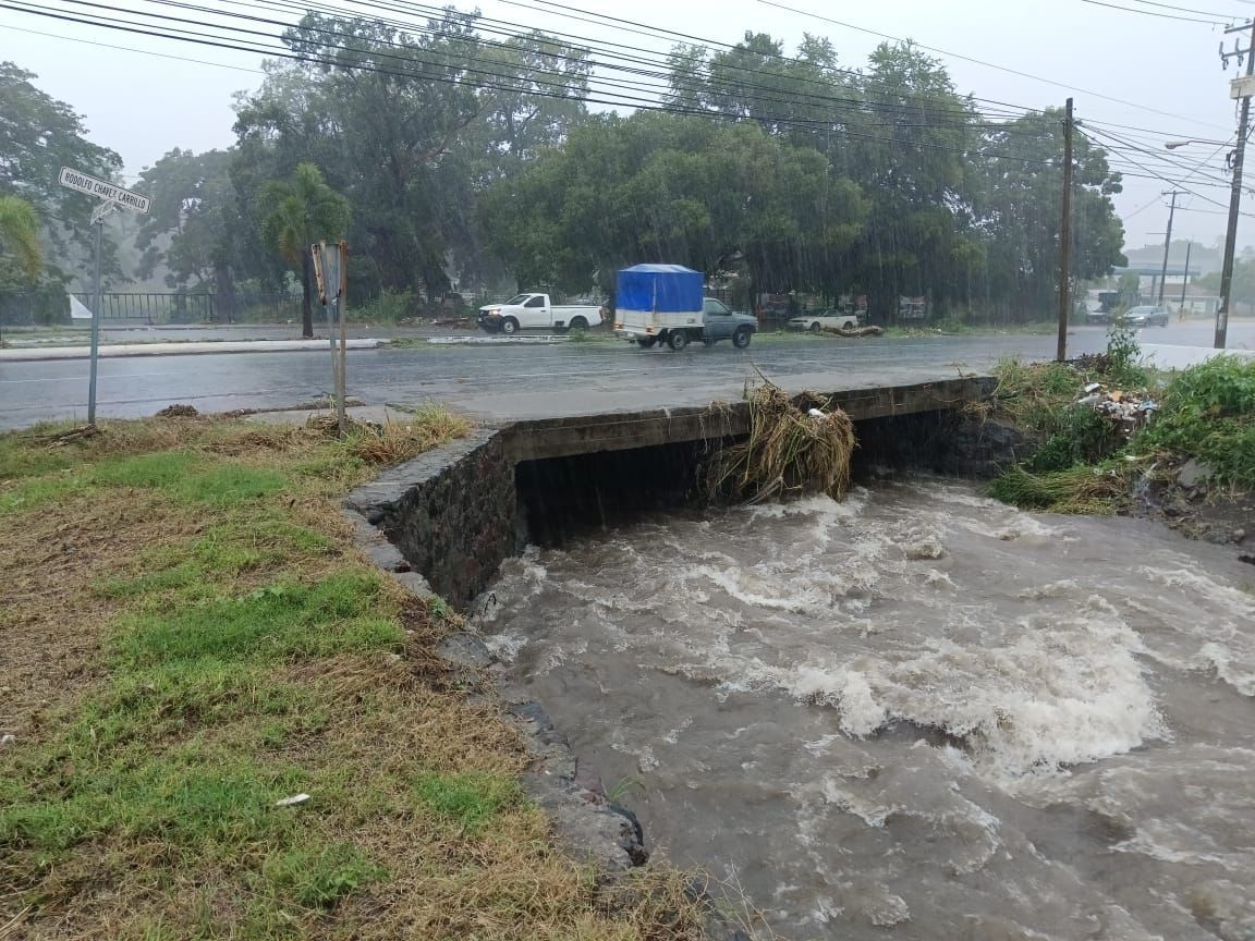 Así se encuentra, en estos momentos, el Arroyo Pereyra sobre el Boulevard Rodolfo Chávez Carrillo, en la división de Colima y Villa de Álvarez.