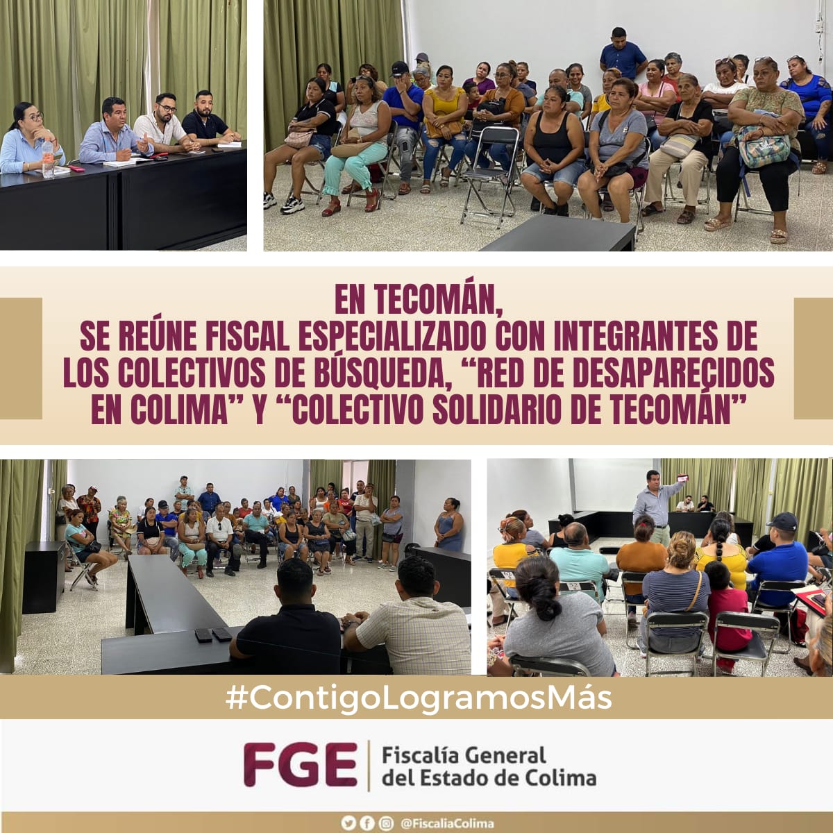 Como parte de las acciones para garantizar los derechos de las víctimas y sus familiares, el Fiscal Especializado en la Investigación en Materia de Desaparición de Personas, Héctor Javier Peña Meza, sostuvo un encuentro en el municipio de Tecomán con integrantes de los Colectivos de Búsqueda, Red de Desaparecidos en Colima y Colectivo Solidario de Tecomán.