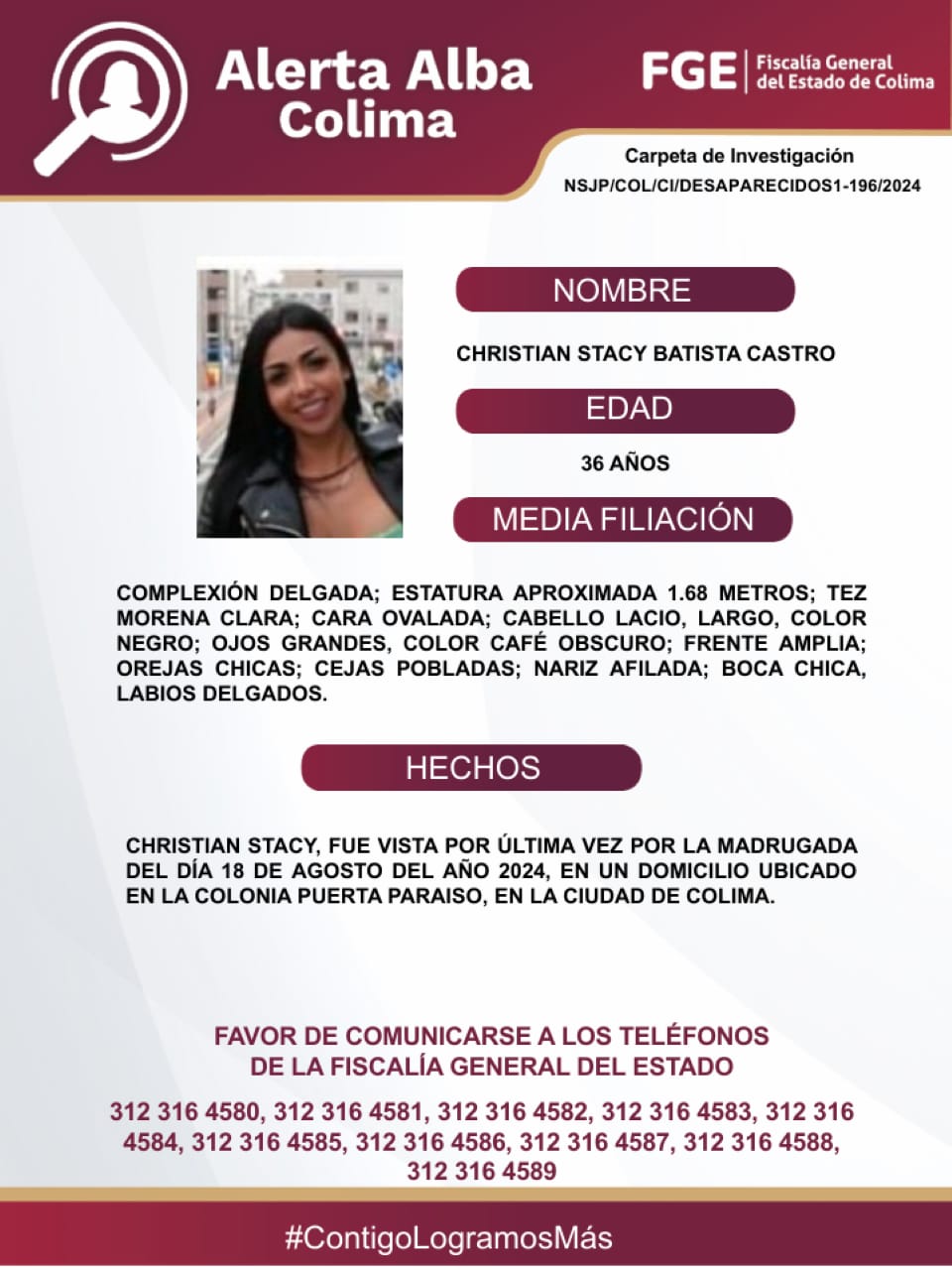 Favor de comunicarse a los teléfonos de la Fiscalía General del Estado. 312 316 45 80, 312 316 45 81, 312 316 45 82, 312 316 45 83, 312 316 45 84, 312 316 45 85, 312 316 45 86, 312 316 45 87, 312 316 45 88, 312 316 45 89