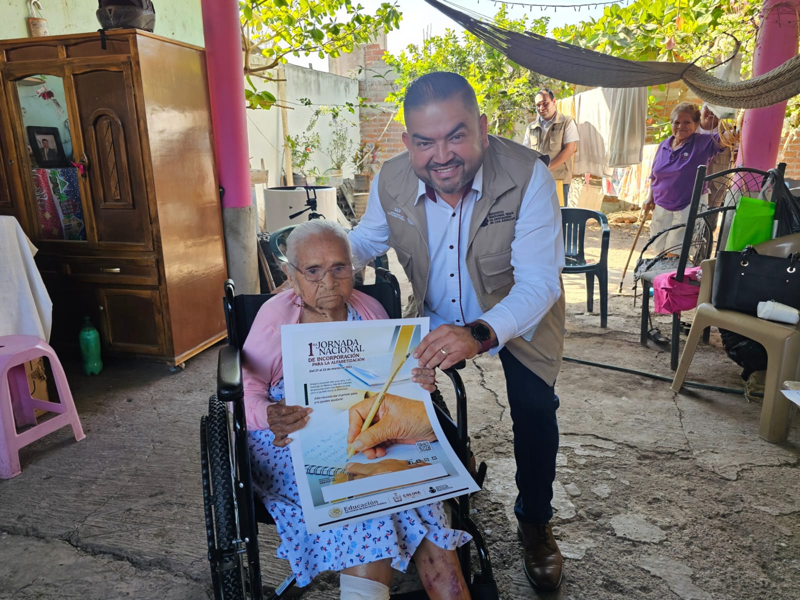 En el marco de esta estrategia, el director general del IEEA Colima, Guillermo Toscano Reyes, tuvo el honor de incorporar a doña Ramona Valle Hernández, una mujer de 104 años, cuya historia es testimonio de que el deseo de aprender no tiene edad.