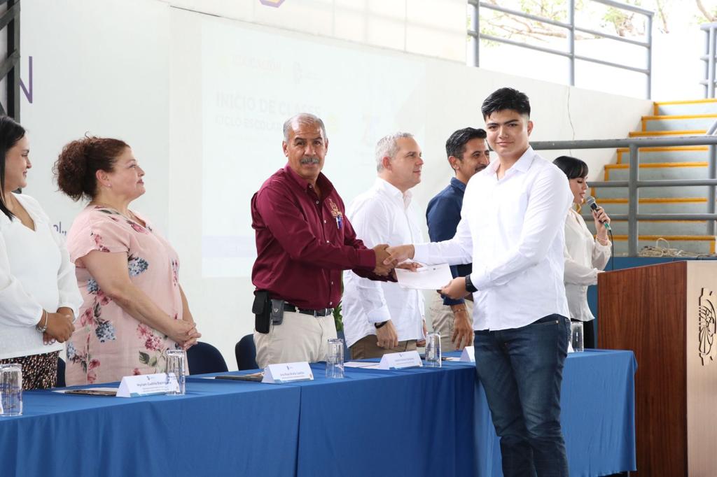 Luego de entregar reconocimientos a 43 jóvenes con los mejores promedios del semestre pasado, el funcionario estatal expresó su confianza que con las acciones realizadas, con una nueva gobernabilidad, honesta, transparente y diálogo permanente con la población; Colima avanza en armonía con los actores productivos, sociales, educativos y culturales; reiteró el compromiso de mantener una comunicación directa con esta comunidad educativa y todas las instituciones de educación, públicas y particulares del estado, para seguir avanzando en la transformación de nuestra entidad y la recuperación de la paz.