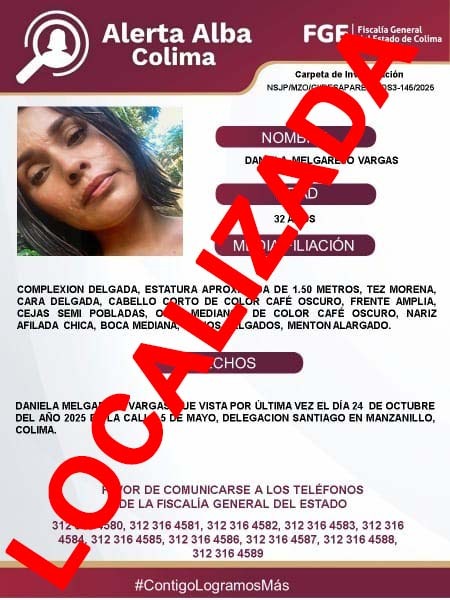 Daniela ya fue localizada. El Protocolo Alerta Alba agradece el apoyo de medios de comunicación y la colaboración de la sociedad mediante llamadas a la línea 911, así como la información que se compartió a través de redes sociales.