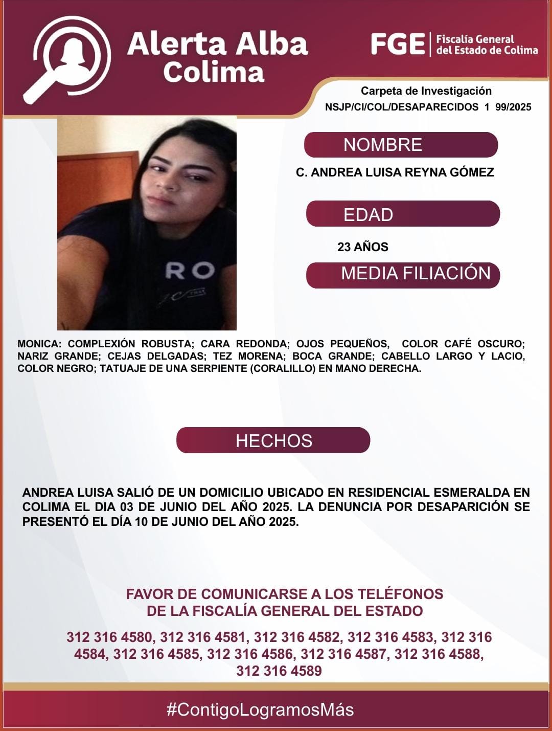Favor de comunicarse a los teléfonos de la Fiscalía General del Estado. 312 316 45 80, 312 316 45 83, 312 316 45 84, 312 316 45 85, 312 316 45 86, 312 316 45 87, 312 316 45 88, 312 316 45 89.