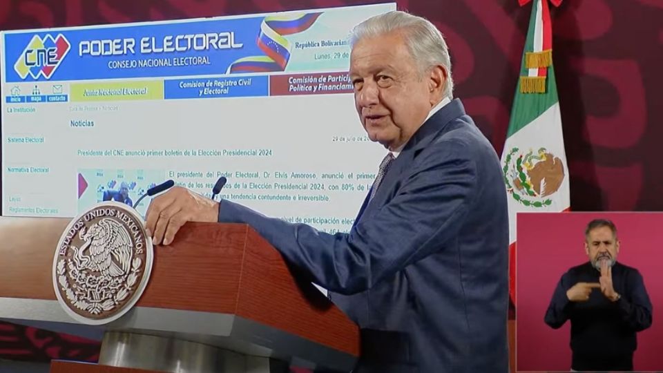 El presidente Andrés Manuel López Obrador dijo que el gobierno de México fijará una posición hasta que concluya el conteo de votos en la elección presidencial de Venezuela. Felicitó al pueblo de Venezuela porque no se registraron hechos de violencia durante la jornada electoral.