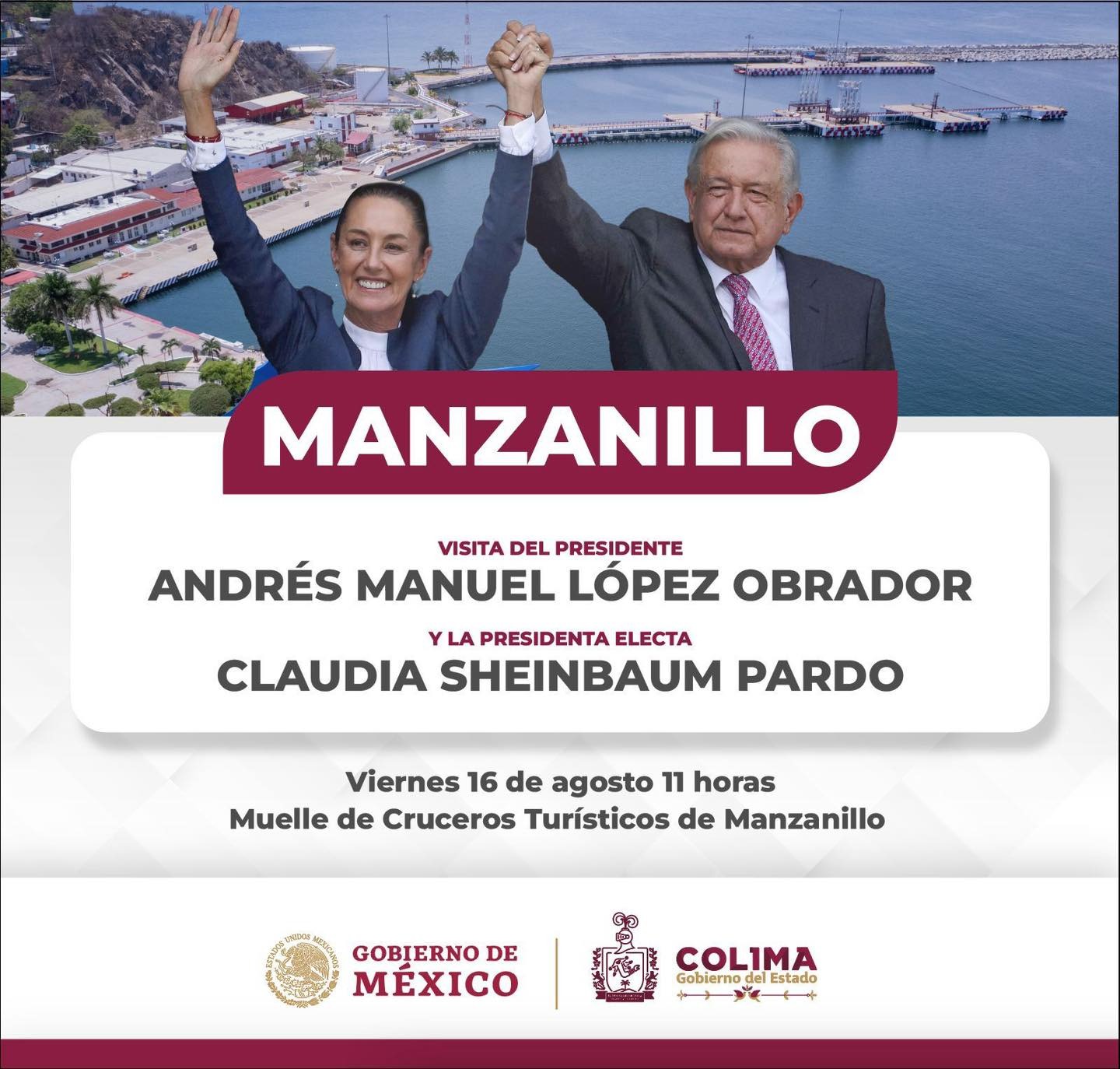AMLO y la presidenta electa, Claudia Sheinbaum visitarán Manzanillo este viernes