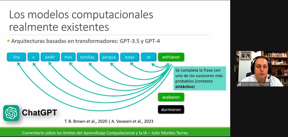 Además, dijo Montes Torres, “para construir los modelos conversacionales, en el ChatGPT se recurre al contexto sintáctico, y cuando le damos una frase inacabada puede terminarla con el siguiente elemento/palabra que tiene más sentido estadísticamente en función del contexto sintáctico”.