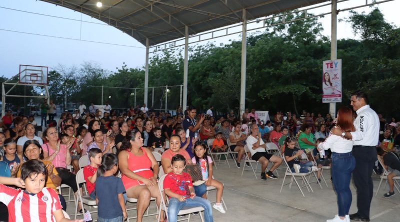Villa de Álvarez, Col.- En reunión de acercamiento con vecinas y vecinos de las colonias Villas de Oro y Villas Providencia, la candidata a la Presidencia de Villa de Álvarez por la Coalición Fuerza y Corazón por Colima, Tey Gutiérrez Andrade, mencionó que como alcaldesa seguirá apoyando la educación, por lo que la próxima administración municipal ofrecerá becas de transporte para estudiantes.