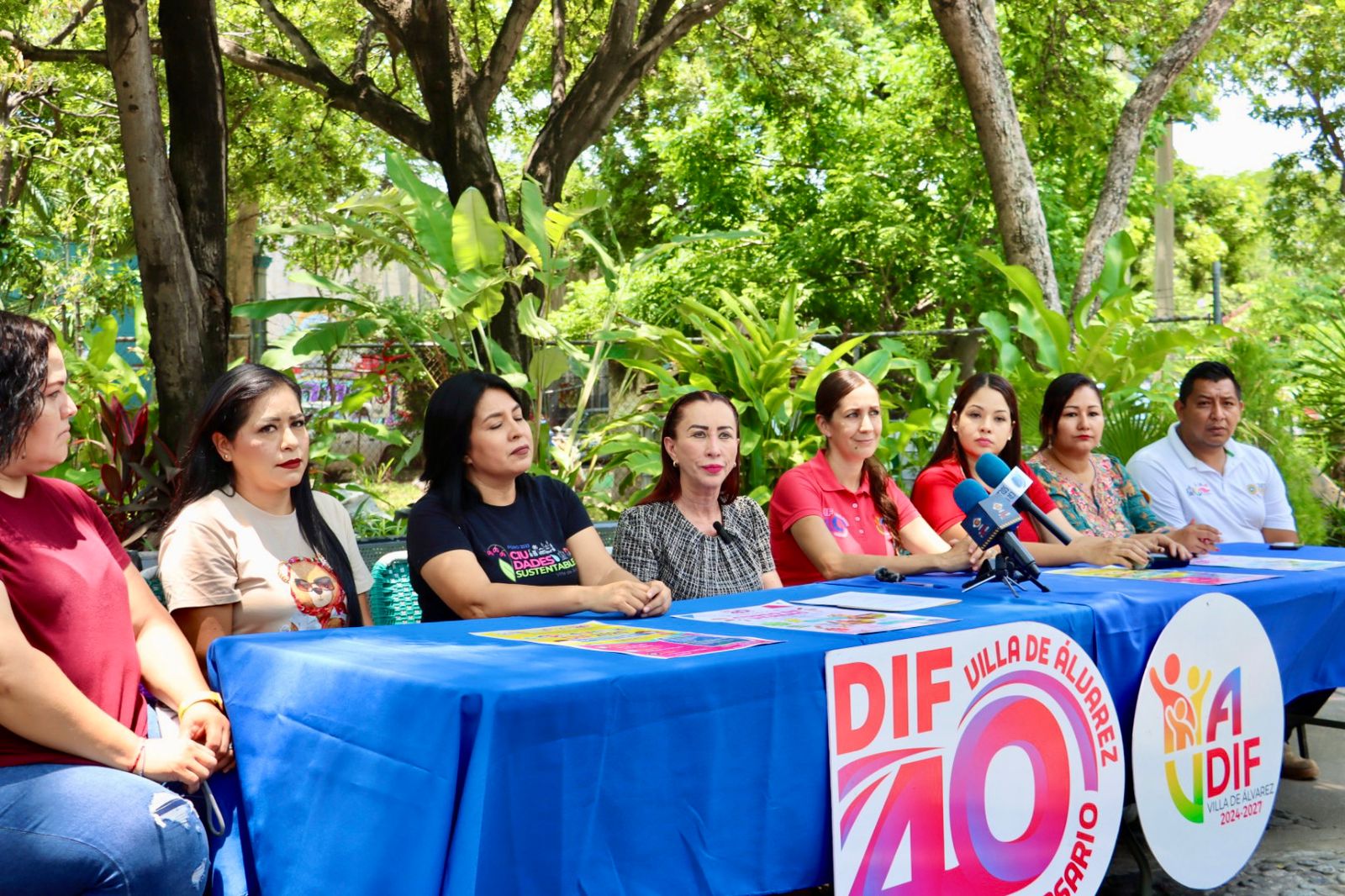 En la rueda de prensa, Tey Gutiérrez estuvo acompañada de la Directora del DIF Municipal, Martha Martínez; la Coordinadora de Voluntariado del DIF Municipal, Cynthia Vinaja; la Coordinadora de PANNAR, Karla Ramírez; Coordinadora de SIPINNA, Maricela Anguiano; Directora de Ecología, Angélica Jiménez; representando a Protección Civil Municipal, Alejandro Ramos; y del Jardín de Niños DIF Las Águilas, la encargada de Dirección, Nélida Martínez.