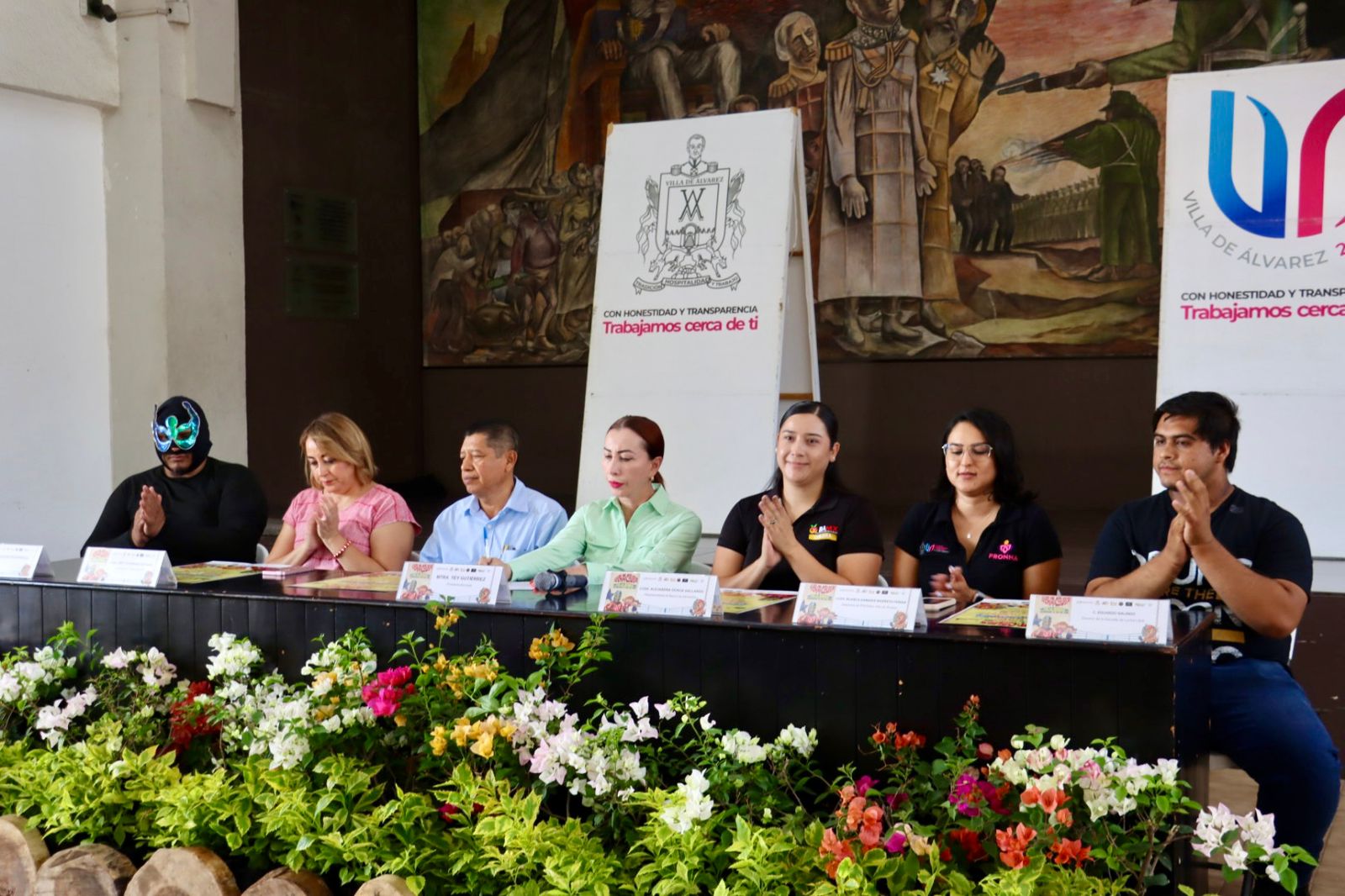 A la conferencia de prensa asistieron el Director del Centro de Entrenamiento Lucha Libre Colima, Eduardo Galindo; el luchador Súper Brazo Black; el Síndico Municipal, José Santos Dolores, y la Secretaria del Ayuntamiento, Lizet Rodríguez.