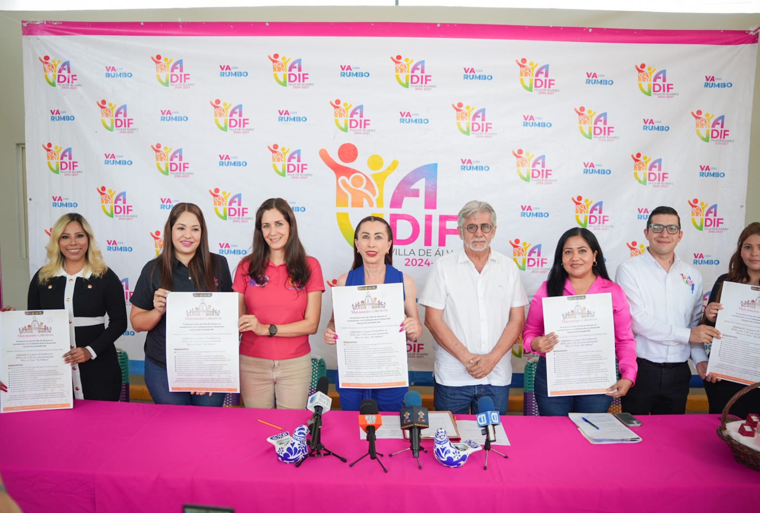 En la conferencia prensa acompañaron a la Presidenta Tey Gutiérrez, Petronilo Vázquez, Director del Instituto de Festejos Charro Taurino y Exposiciones de Villa de Álvarez, Cristina Árcega, Directora del Registro Civil de Villa de Álvarez, y Martha Yaditra Martínez, Directora del DIF Municipal Villa de Álvarez.