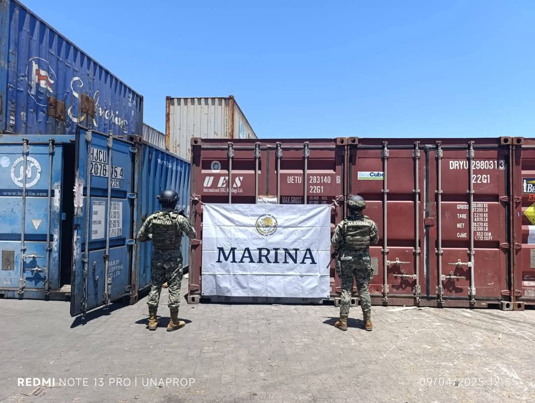 Esta acción se llevó a cabo durante una inspección conjunta entre personal naval y elementos de la Aduana Marítima, quienes detectaron irregularidades en un contenedor, procediendo a su revisión, donde se localizó citado material peligroso, el cual carecía de los permisos requeridos para su legal exportación.