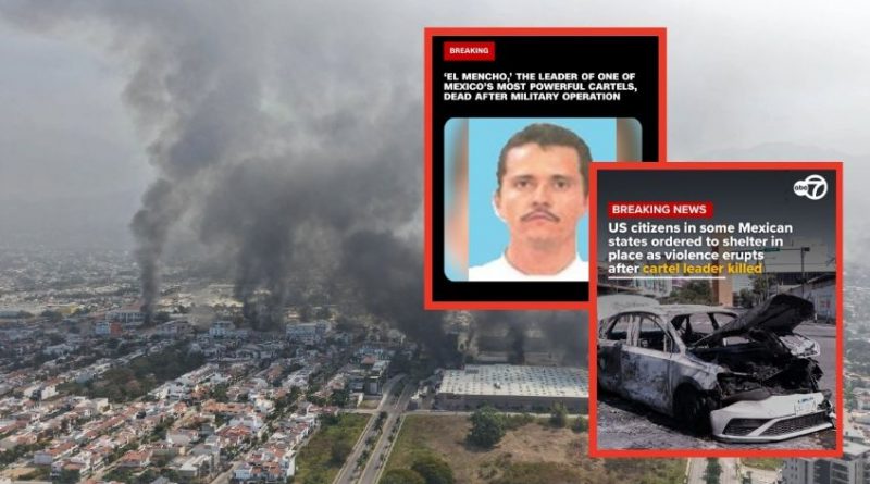 «El ejército mexicano mató al líder del poderoso Cártel Jalisco Nueva Generación, Nemesio Rubén Oseguera Cervantes, alias «El Mencho», en un operativo realizado este domingo, informó un funcionario federal. El domingo, la Embajada de los EE. UU., comunicó que los ciudadanos estadounidenses en múltiples estados deberían permanecer refugiados en un lugar seguro».