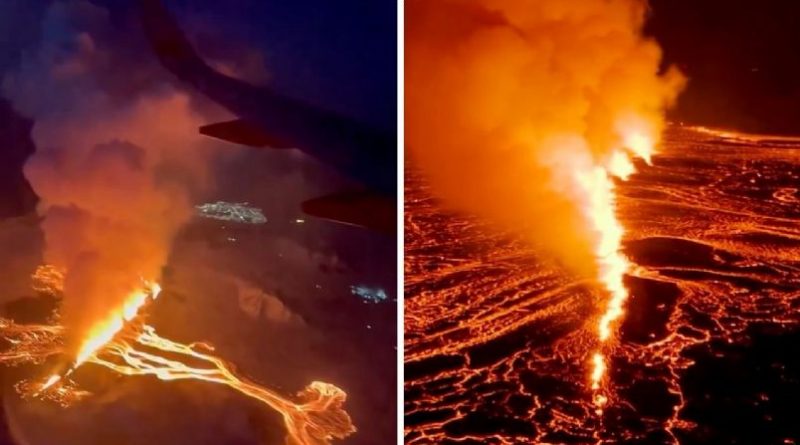 La península de Reykjanes en Islandia ha sido nuevamente sacudida por una erupción volcánica, la séptima en lo que va del año. Este evento natural, ocurrido la noche del miércoles, generó una fisura de aproximadamente tres kilómetros de largo y arrojó lava al suroeste de la región. El evento fue captado por los pasajeros de un avión que pasaba por la zona y las imágenes son impresionantes.