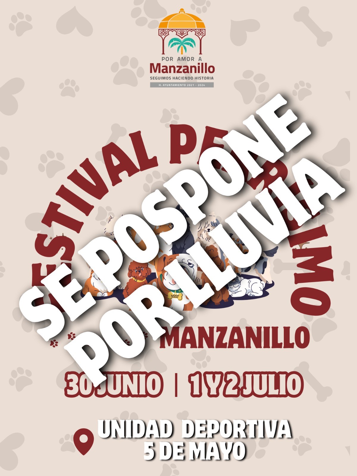 Se informa a la población que el Festival Perrísimo Manzanillo 2023 que se tenía programado para este fin de semana, se pospondrá hasta nuevo aviso.