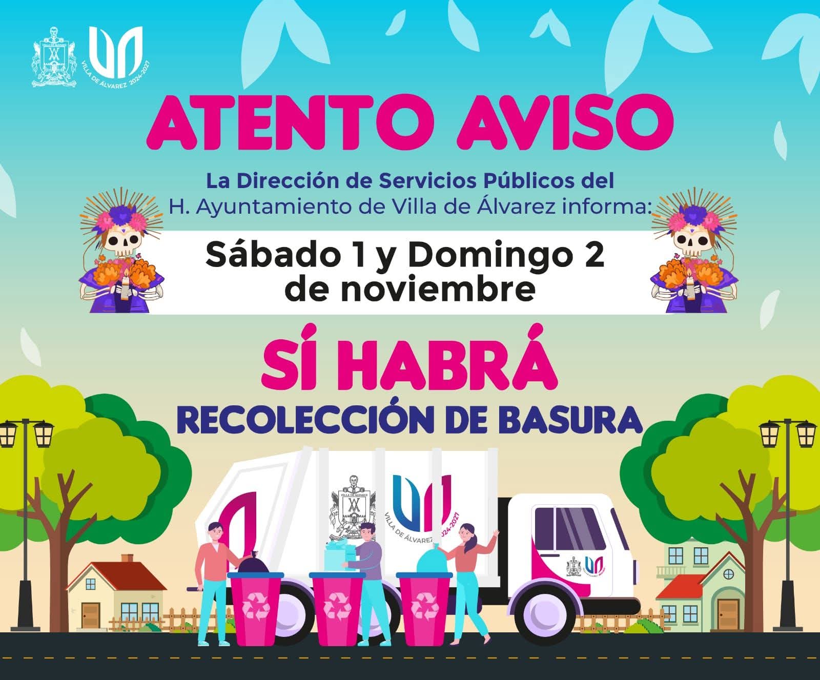 El servicio de recolección de basura se presentará de manera normal este 1 y 2 de noviembre en Villa de Álvarez.