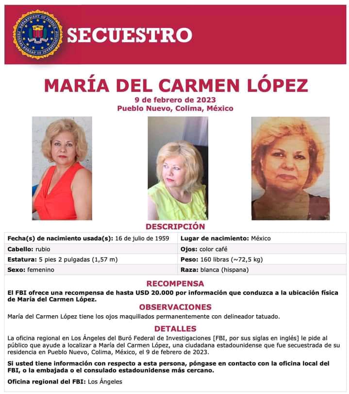 La Fiscalía General del Estado (FGE) informa que está colaborando con la Fiscalía Especializada en Materia de Delincuencia Organizada (FEMDO) de la Fiscalía General de la República (FGR) en la investigación de la privación ilegal de la libertad y secuestro de una ciudadana mexicana que también cuenta con nacionalidad estadounidense, en hechos ocurridos en una localidad del estado de Colima.
