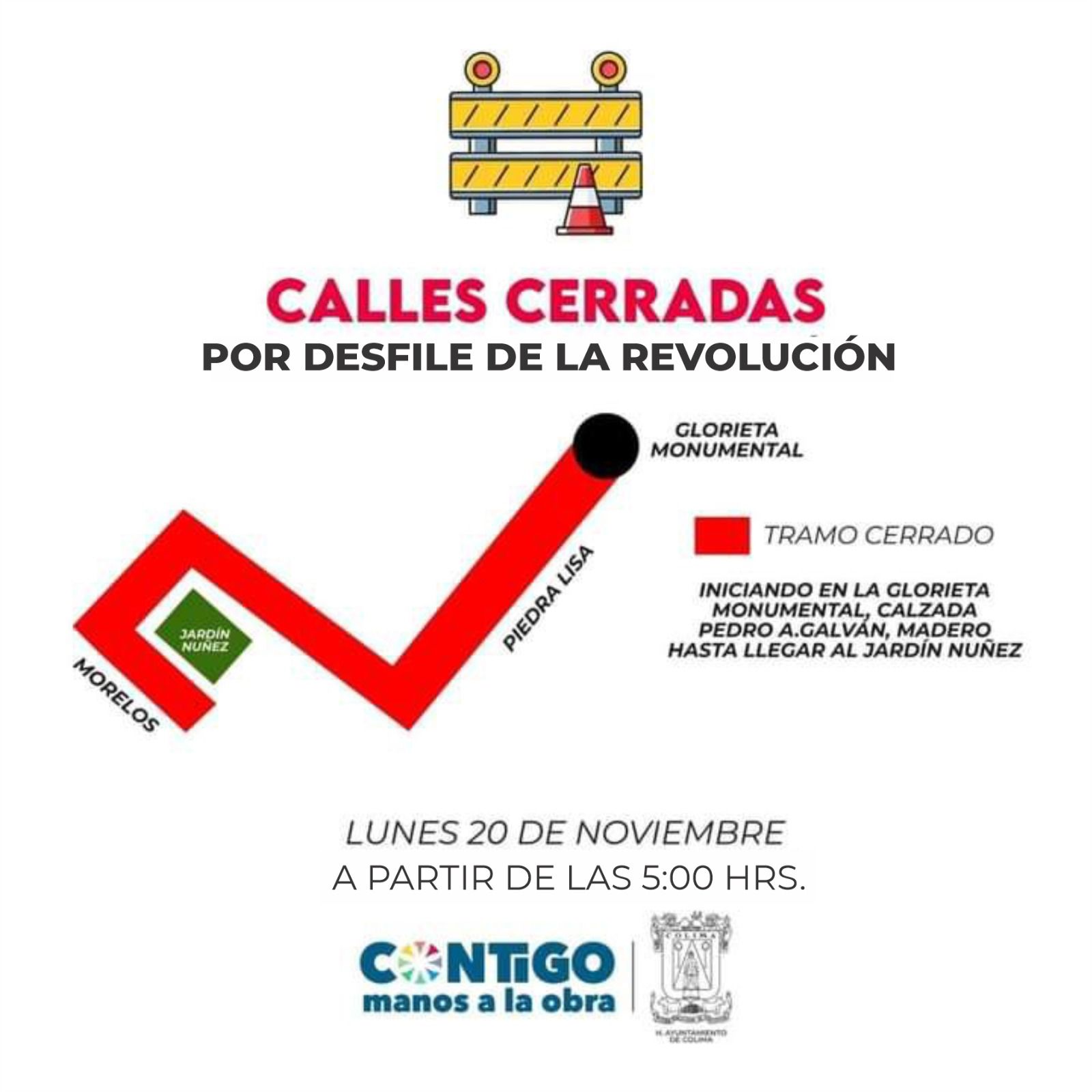 Este lunes 20 de noviembre, se realizará el tradicional Desfile de la Revolución por lo que estará cerrada la Calzada Galván y la calle Madero hasta el jardín Núñez.