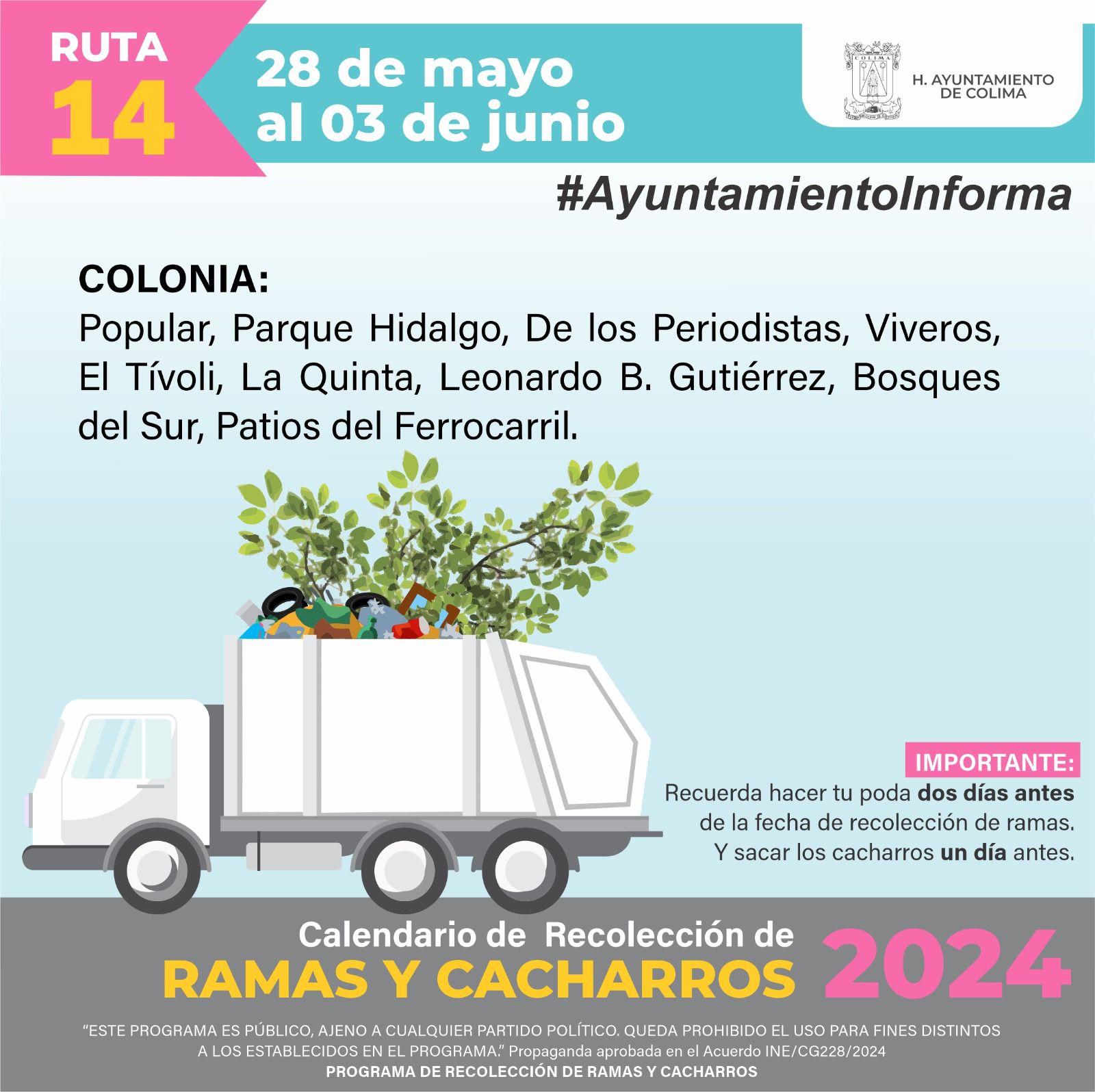 Recuerda podar tus árboles dos días antes de que inicie el recorrido y saca tus cacharros un día antes.