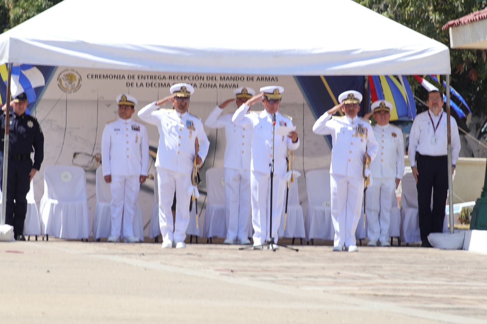Manzanillo, Colima.- Ayer se realizó la Entrega-Recepción del Mando de Armas de la Décimo Cuarta Zona Naval por acuerdo del Alto Mando de la Armada de México como parte de la rotación permanente del personal y con la finalidad de que la Secretaría de Marina-Armada de México continúe con el cumplimiento de su misión y atribuciones.