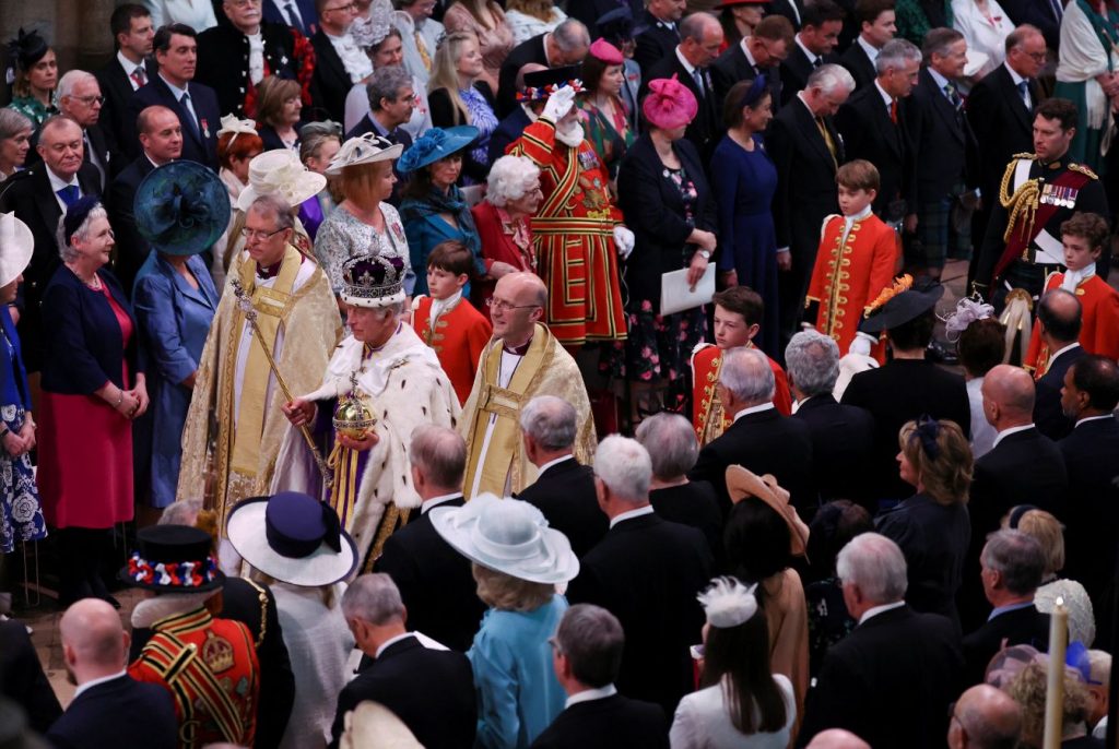 El rey Carlos III ha sido coronado en la Abadía de Westminster por el arzobispo de Canterbury, Justin Welby. Posteriormente todos gritan «¡Dios salve al Rey!»