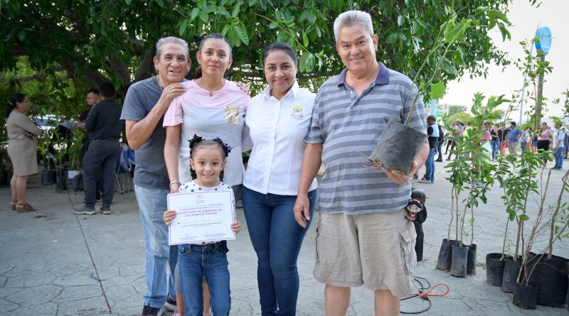Cientos de familias manzanillenses recibieron más de 500 arbolitos de manos de la alcaldesa y del director de Medio Ambiente, Alejandro Reyes, la Secretaria del H. Ayuntamiento, Martha Zepeda, y el Tesorero Municipal, Lalo Camarena.