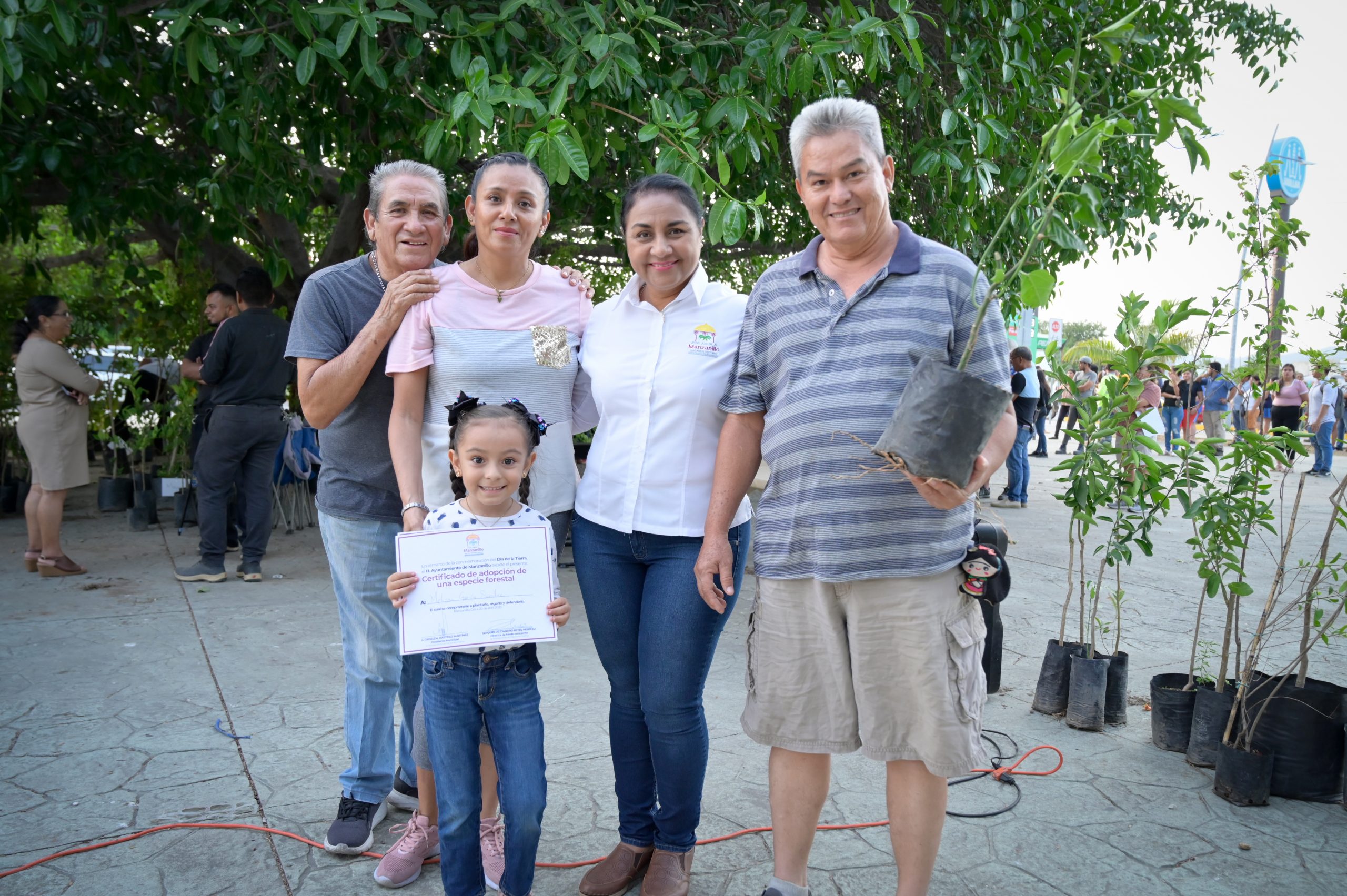 Cientos de familias manzanillenses recibieron más de 500 arbolitos de manos de la alcaldesa y del director de Medio Ambiente, Alejandro Reyes, la Secretaria del H. Ayuntamiento, Martha Zepeda, y el Tesorero Municipal, Lalo Camarena.