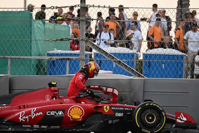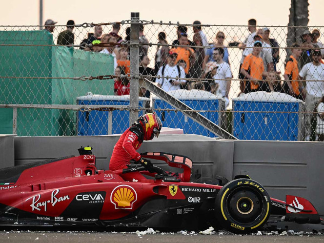 Carlos Sainz provocó una bandera roja después de estrellarse en el muro de protección cuando habían transcurrido nueve minutos de la práctica 2. Su auto quedó mal de la parte izquierda, donde al parecer el aire sucio de un coche de adelante le provocó un sobreviraje, lo que le hizo girar dos veces antes de golpear las barreras. El piloto se encuentra bien de salud y salió por su propio pie del monoplaza.