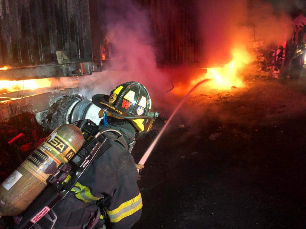 Elementos de protección civil del municipio de Cuauhtémoc, dieron la primera respuesta ante el siniestro, y posteriormente oficiales de nuestra institución, a bordo de nuestras unidades contra incendios, mantienen hasta esta mañana, en trabajo coordinado, los trabajos de enfriamiento de los vehículos.