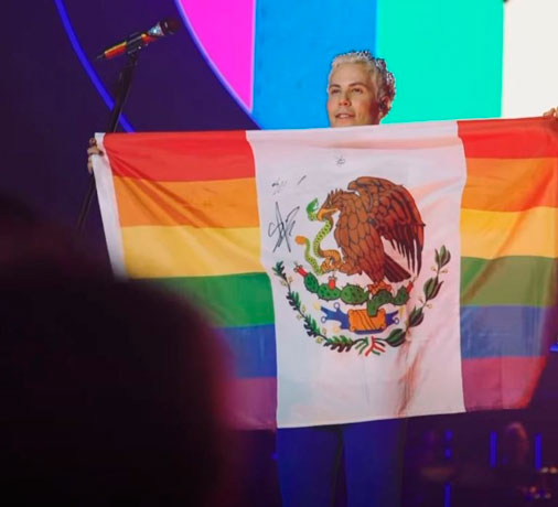 Fue durante la última presentación de REBELDE cuando Chávez aprovechó un momento para conversar con su público y dar un mensaje, pero antes de iniciar, caminó él solo al frente del escenario y ondeó la bandera de México pero en lugar de que llevara los colores verde, blanco y rojo, fueron cambiados por los colores de la comunidad LGBT.
