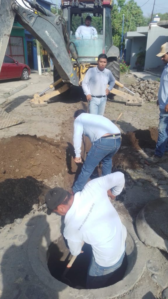 En los trabajos de sustitución, estuvieron presentes el Ing. José Manuel Dueñas, Director de redes de drenaje y trabajadores de las brigadas de CIAPACOV.