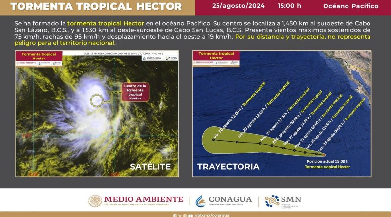La tarde de este domingo 25 de agosto se ha formado la tormenta tropical Héctor en el Océano Pacífico. Sin embargo, el Servicio Meteorológico Nacional (SMN) informó que debido a su distancia y trayectoria, el nuevo sistema no significa un riesgo considerable para México.