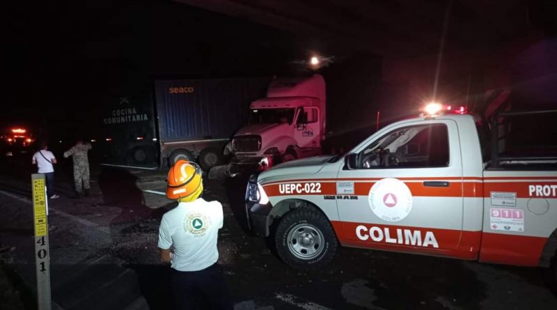 La noche de este lunes 03 de julio se registra un fuerte accidente de tránsito sobre la autopista Guadalajara a Colima, en donde participa un vehículo sedan y dos tracto camiones sobre el carril de Guadalajara a Colima a la altura de las instalaciones de Guardia Nacional, en el municipio de Cuauhtémoc.