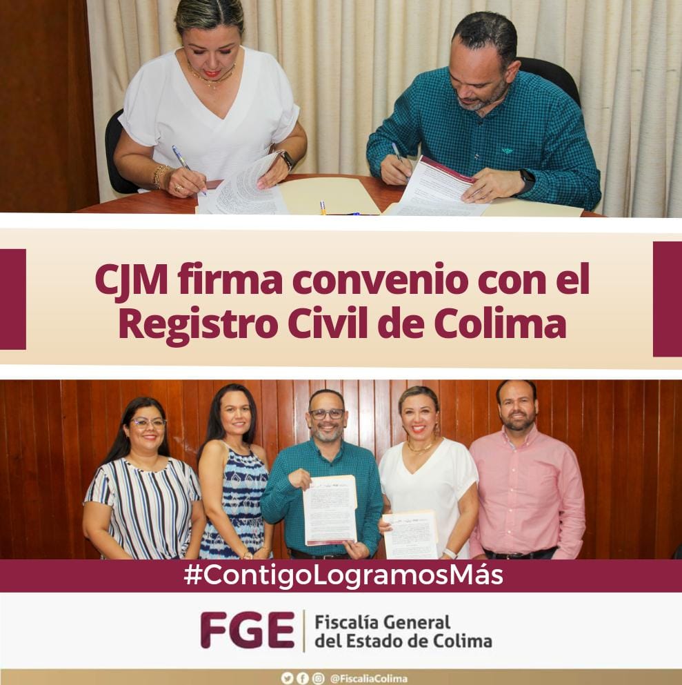 La Fiscalía General del Estado a través del Centro de Justicia para las Mujeres (CJM), a cargo de la Directora General, Diana Elizabeth Cortés Vaca, firmó un convenio de colaboración con la titular del Registro Civil del Estado, Brenda del Carmen Gutiérrez Vega, en el cual se establece la conjunción de esfuerzos a fin de realizar diversas acciones para garantizar el derecho humano de acceso a la justicia a las mujeres que sufran de violencia intrafamiliar o de género, así como a las víctimas directas o indirectas.