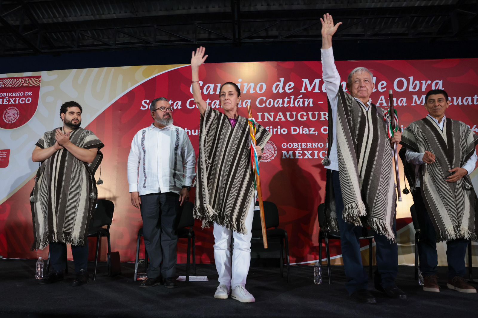 *Junto al Presidente hizo el corte del listón inaugural del camino de mano de obra de Santa Catarina Coatlán-Santa Ana Miahuatlán *Destacó que los Caminos Artesanales significan dar el recurso directamente al pueblo para que lo administre de manera honesta *“Claudia es muy inteligente, muy capaz, es una mujer con experiencia, honesta que va a seguir poniendo en alto en el mundo el nombre de nuestro querido México”, aseguró el Presidente Andrés Manuel López Obrador