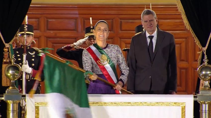 Fue a las horas 22:59 horas que la primera presidenta de México salió al balcón presidencial de Palacio Nacional.