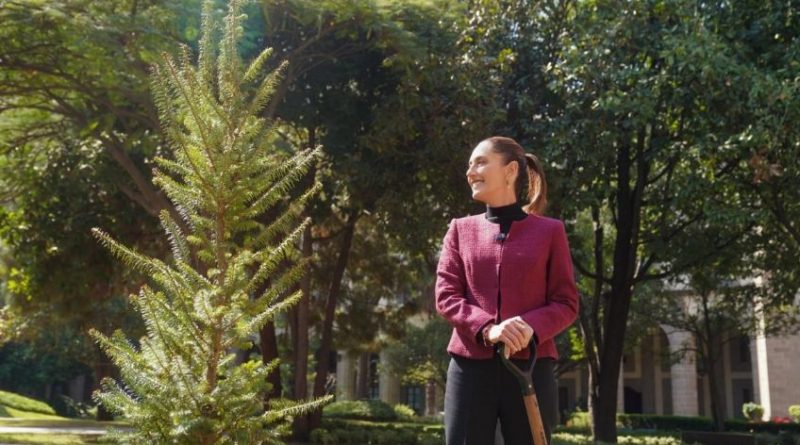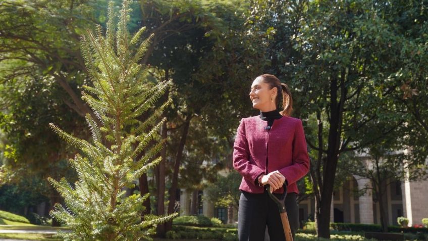 La presidenta Claudia Sheinbaum cerró el 2024 sembrando en Palacio Nacional una Abies religiosa, una conífera nativa de México, y a su vez deseando un buen 2025 para las y los mexicanos.