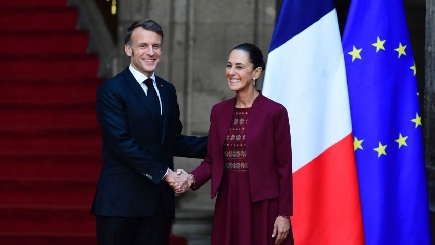 Claudia Sheinbaum recibió al presidente de Francia, Emmanuel Macron, con quien abordará el recibimiento de un códice de una canción europea, así como del acuerdo comercial que se renovará en 2026 con la Unión Europea (UE).