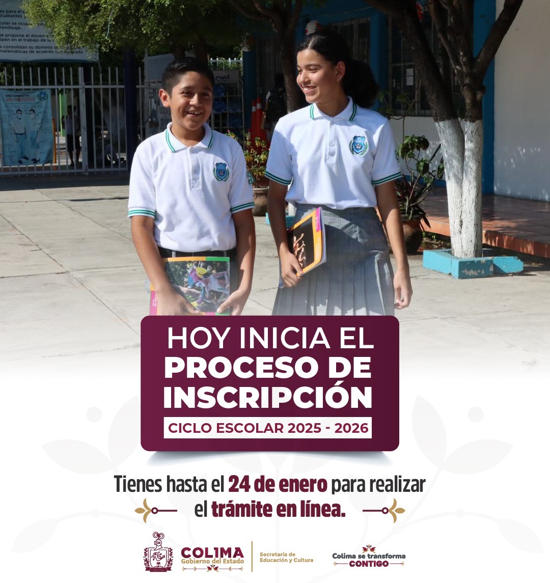 El Gobierno del Estado de Colima, a través de la Secretaría de Educación y Cultura, informa que, a partir de este lunes 13 está disponible el Registro de Solicitud en Línea y Selección de Escuela para el Ciclo Escolar 2025-2026. Este proceso, que se extenderá hasta el 24 de enero, es un paso clave para madres, padres y personas tutoras con menores en edad de ingresar al primer grado de primaria o secundaria.