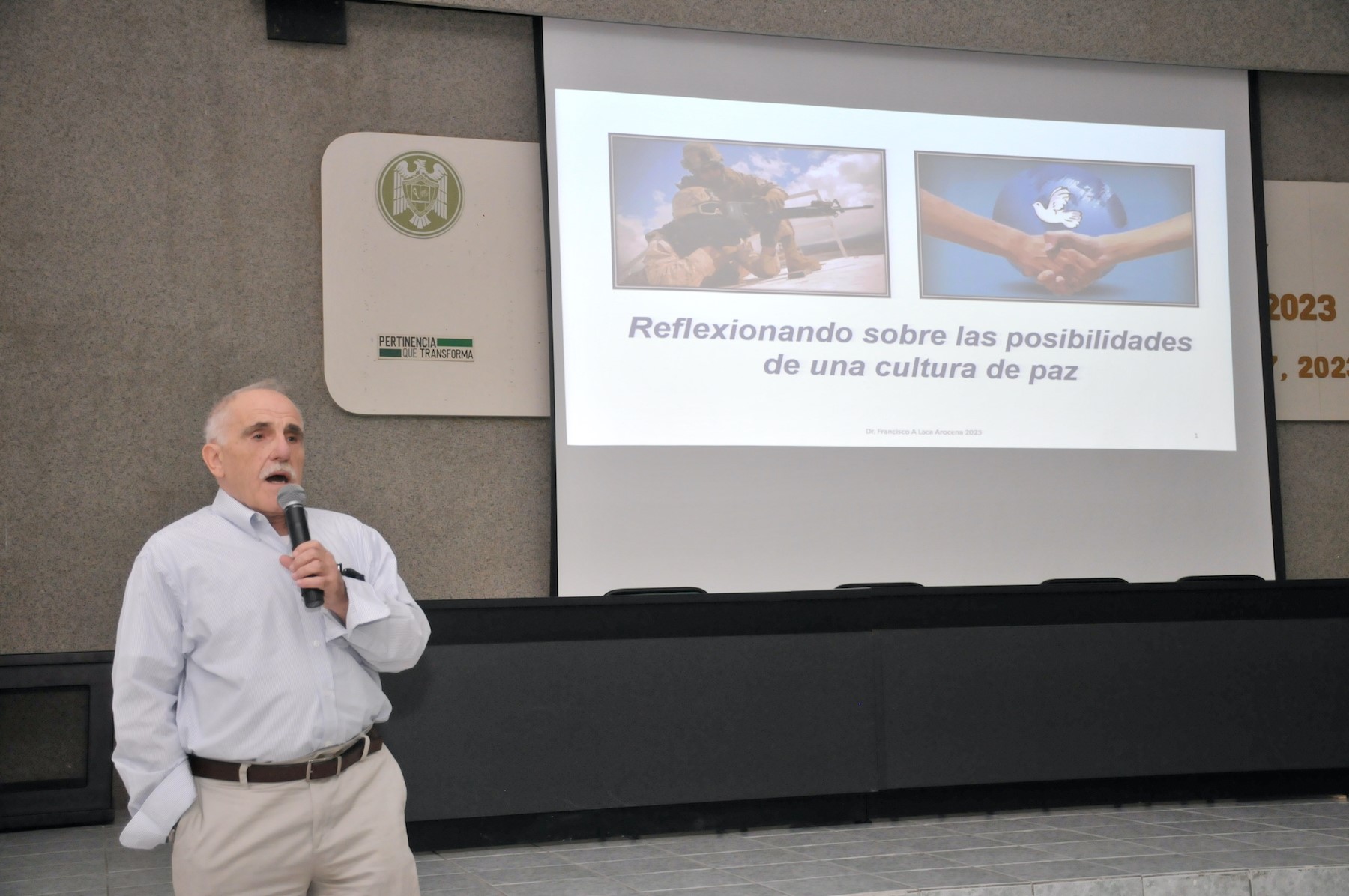 En el marco de las actividades de la 34 Semana de Psicología que se realiza esta semana en la Universidad de Colima, se impartió la conferencia “Reflexionando sobre las posibilidades de una cultura de paz”, a cargo de Augusto Laca Arocena, en el auditorio de la Facultad de Psicología.