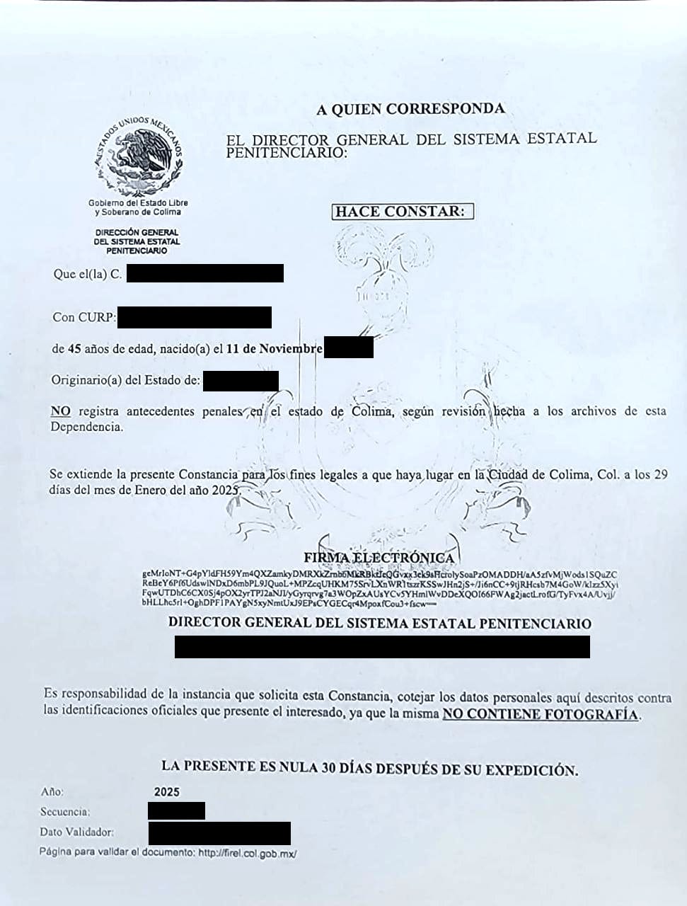 4.- La contratación de ese trabajador eventual se dio luego de que el comité de selección creado para realizar esas contrataciones, verificara que cumplió con todos los requisitos establecidos en la convocatoria, entre otros, presentar la carta de antecedentes no penales expedida por la Dirección General del Sistema Penitenciario del Gobierno del Estado de Colima.