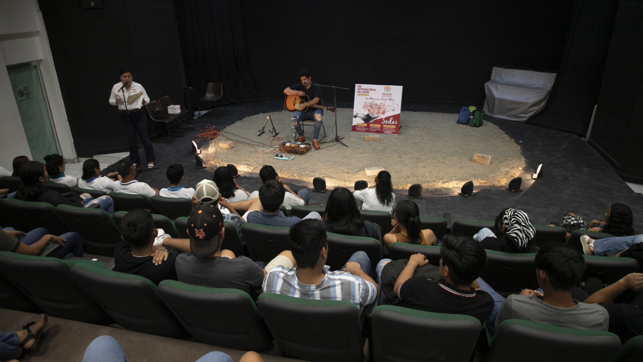 La jornada cultural inició con el concierto de música Indie, por el músico Niño Sol. Más tarde la poetisa Sara Uribe dictó una conferencia magistral y al concluir, la compañía de teatro “Puercoespines”, bajo la dirección de Alejandro Franco, presentó la obra de teatro “Antígona González”, basada en un libro de poesía homónimo de Sara Uribe.