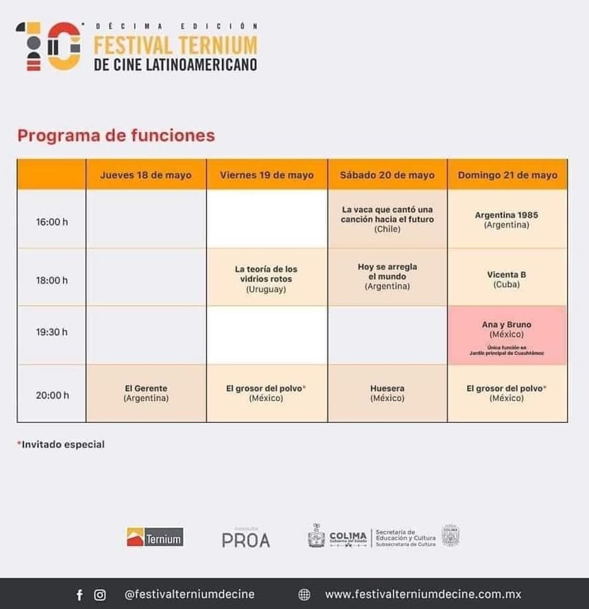 La Subsecretaría de Cultura del Gobierno del Estado de Colima y la Fundación Proa invitan al público en general a la inauguración del Festival Ternium de Cine Latinoamericano, con la proyección de la película argentina “El Gerente”, que se lleva a cabo hoy jueves 18 de mayo en punto de las 8 de la noche en el Teatro Hidalgo.