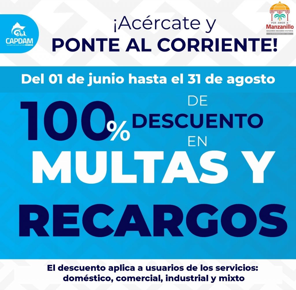 Este incentivo fiscal, será vigente a partir del 01 de junio de 2023, hasta el último día del mes de agosto de ese mismo año y aplicará para los usuarios de los servicios doméstico, comercial, industrial y mixto. El descuento que se aplicará será del 100 por ciento, de las multas y recargos impuestos por una falta de pago en los servicios de agua potable, alcantarillado y saneamiento.