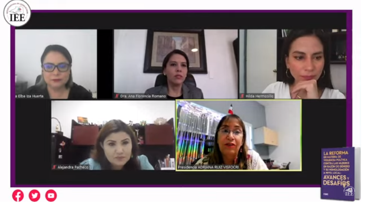 En el evento participaron Hilda Yolanda Hermosillo Hernández, Consejera Electoral del Instituto Estatal Electoral de Aguascalientes (IEEA); Martha Elba Iza Huerta, Consejera Electoral del IEE Colima; Delta Alejandra Pacheco Puente, Consejera Electoral del Instituto Electoral y de Participación Ciudadana de Yucatán (IEPAC); y como moderadora fungió Ana Florencia Romano Sánchez, Consejera Electoral del órgano electoral local colimense.